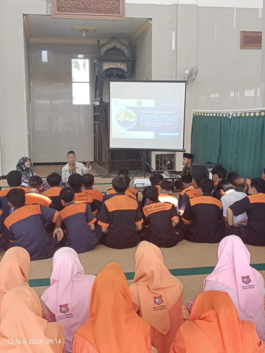 Madrasah Aliyah Al-Khoiriyah kembali menunjukkan komitmennya dalam mempersiapkan generasi muda yang siap memasuki dunia kerja. Hari ini, seluruh siswa kelas XII mengikuti kegiatan pembekalan untuk Program Pendidikan Sistem Ganda (PSG), atau yang lebih dikenal dengan Praktik Kerja Industri (Prakerin), yang rencananya akan dilaksanakan pada bulan Januari hingga Februari 2025. Kegiatan pembekalan ini digelar atas kerja sama antara Madrasah Aliyah Al-Khoiriyah dengan PT. Delta Suray Textile, sebuah perusahaan yang bergerak di bidang tekstil.